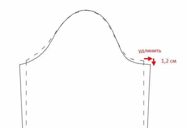 Удлиняем плечо на нужное значение. При этом пройму обязательно нужно углубить.