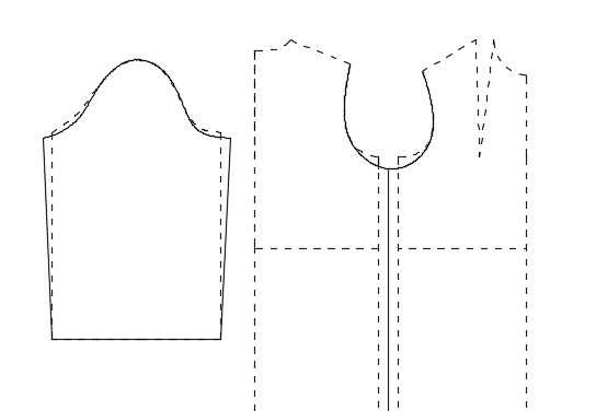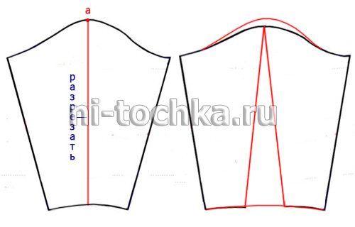 Если такого изменения недостаточно, можно увеличить высоту оката и соответственно изменить лекала спинки и полочки (см. рис. ниже)