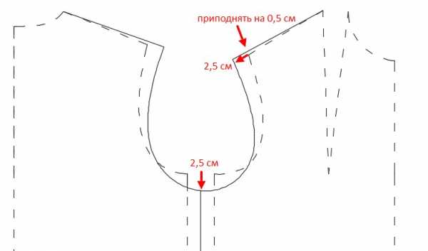Опустите глубину проймы, например на 2,5 см. Оформите новую линию проймы.
